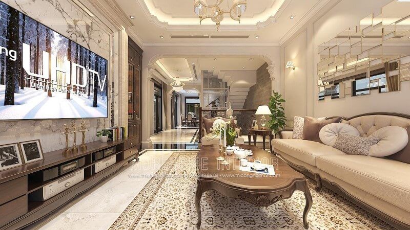 Sản phẩm bàn trà gỗ óc chó tân cổ điển cao cấp ở công trình thi công nội thất biệt thự ecopark Hưng Yên