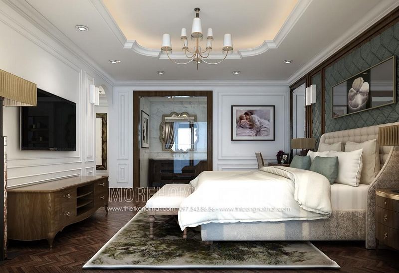 Mẫu kệ tivi gỗ óc chó tân cổ điển đẹp cao cấp cho phòng ngủ biệt thự