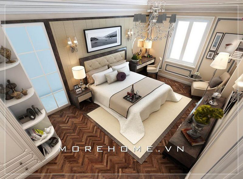 Thiết kế giường ngủ phòng Master phong cách tân cổ điển