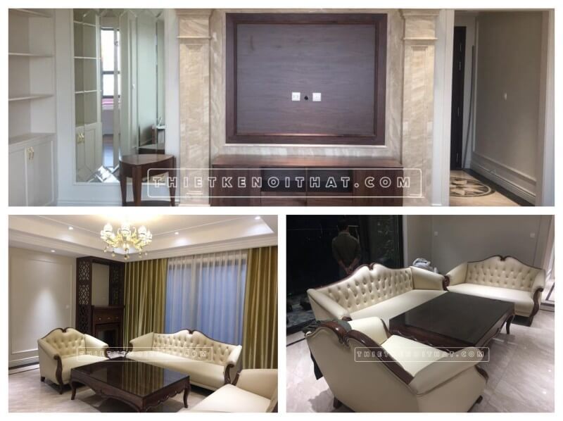 Công trình hình ảnh thi công nội thất phòng khách tân cổ điển đẹp tinh tế tại chung cư Vinhomes Nguyễn Chí Thanh, quận Đống Đa, Hà Nội