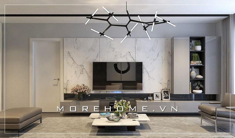 Sử dụng kệ ti vi cao cấp hiện đại màu trắng trang nhã tô thêm nét nổi bật của ngôi nhà