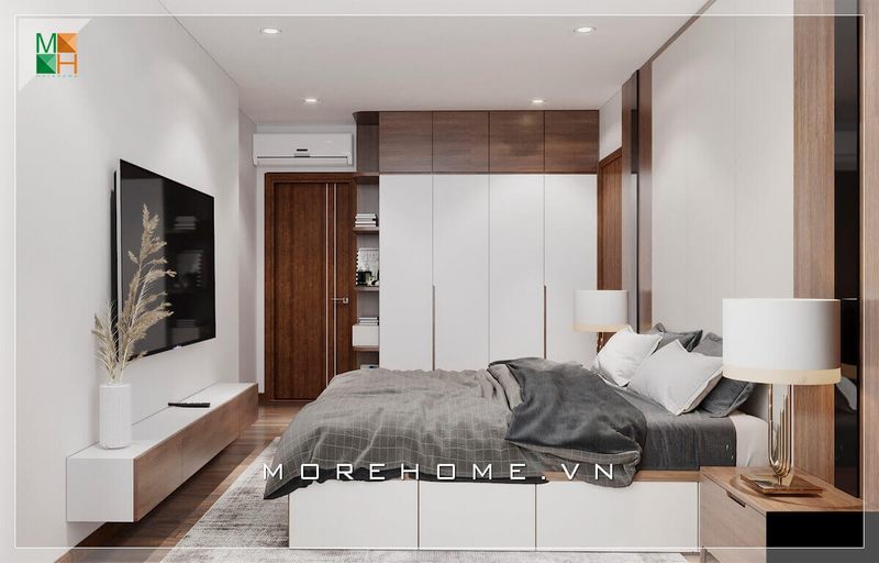Thi công kệ tivi gỗ công nghiệp cho phòng ngủ chung cư hiện đại tại Thăng Long Number One