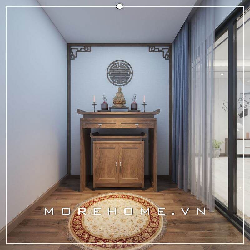 Mẫu bàn thờ gỗ sồi nhập khẩu với thiết kế nhỏ gọn, đường nét hiện đại, tinh tế phù hợp với không gian diện tích vừa